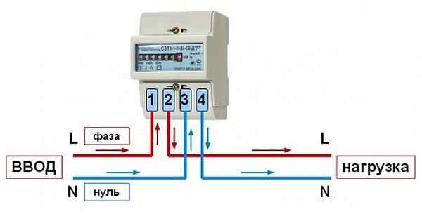 Обычно подключение производится следующим образом: фазный провод от вводного автомата подключается к первой клемме счетчика, а фазный провод, идущий к потребителю, – ко второй. Нулевой провод от вводного автомата подключается к третьей клемме счетчика, а нулевой провод, идущий к потребителю, – к четвертой.