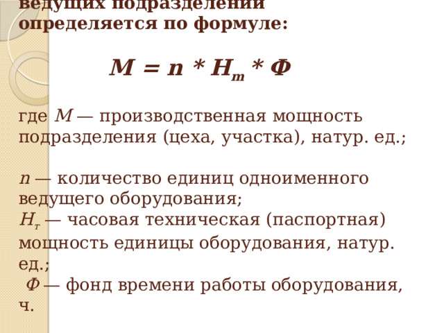 Производственная мощность = (Время работы станка ─ Время на переналадку ─ Время простоев) * Скорость работы станка
